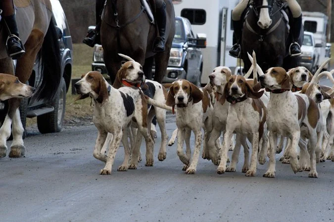 Since 1927 Millbrook has always had American foxhounds, but beginning in 1980, Crossbreds were introduced with drafts from Ben Hardaway, renowned Master and breeder of the Midland Hunt with Midland Dancer in 1981. The pack evolved as an American and Crossbred pack with the occasional outcross from Penn-Marydel lines. In 2004, Donald Philhower brought a number of Penn-Marydel hounds to Millbrook which have been valuable additions to our traditional pack. Two further changes have occurred in the past twenty years: the fields have become larger, and coyotes have become native to our country. Hounds now pursue red foxes, coyotes, and the occasional grey fox and bobcat.